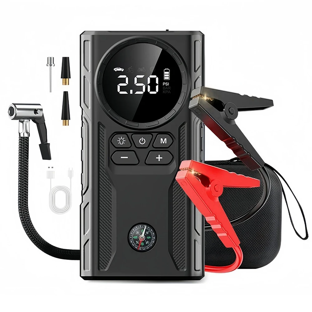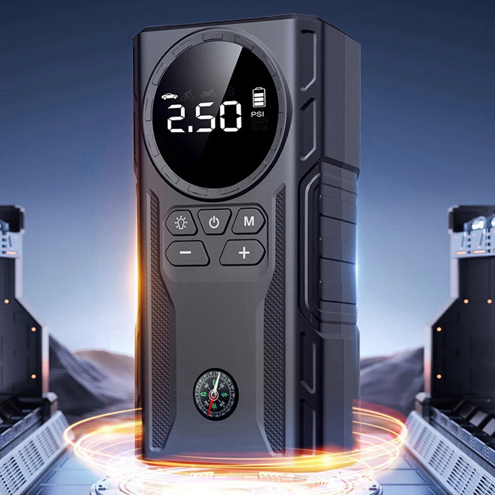 1.Versatile Functionality: This car wireless air pump serves multiple purposes, including acting as a car emergency jump starter, flashlight, and mobile power bank, making it an essential tool for various situations.