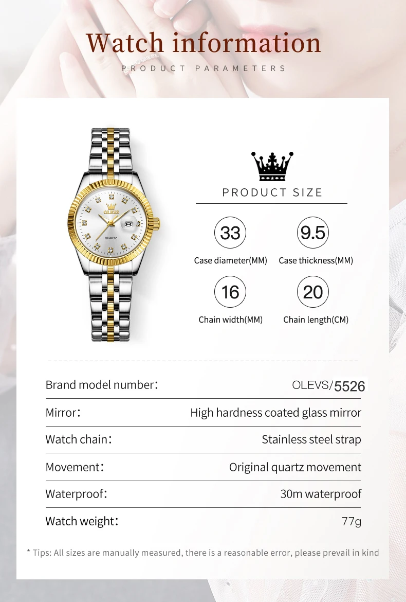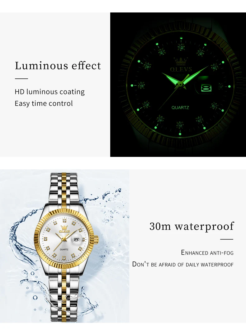 OLEVS New Original Quartz Watch for Women Luxury Top Brand Fashion Elegant Stainless Steel Waterproof Ladies Wristwatches 5526